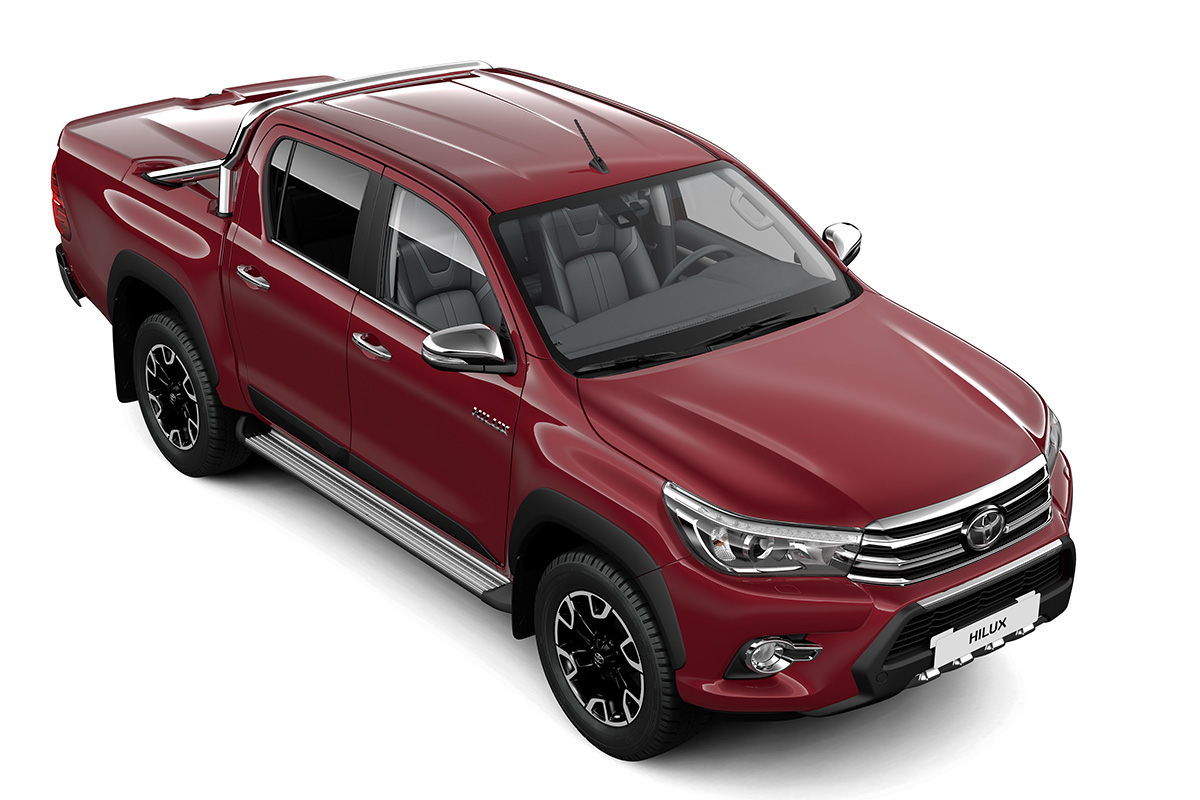 Toyota presenta una nueva línea de productos para el Hilux, un pick up que está disponible con tres tipos de carrocería: cabina sencilla (dos plazas), cabina extra (2+2) y doble cabina (cinco plazas) —más información sobre este modelo—. Para las dos primeras variantes de carrocería solo hay un nivel de equipamiento cuyo precio es 30 489 € en el caso de la cabina sencilla y de 31 569 € en la de cabina extra. La gama para la variante de cabina extra es más amplia y el precio de partida es de 32 217 € (listado completo de precios).