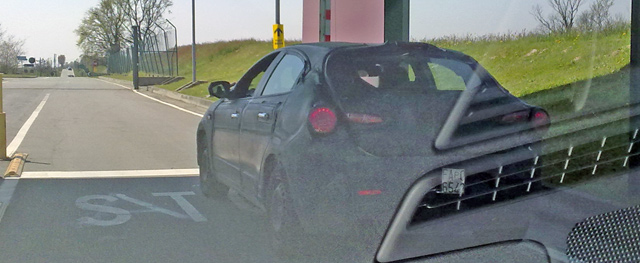 Otra cosa curiosa de estas instalaciones es que puede ver prototipos circulando a tu lado. Por ejemplo, en la presentación del MiTo vimos al Giulietta (convenientemente maquillado). En esta última visita también he visto algo raro, os pongo la foto a ver si alguién sabe lo que es. Por tamaño era parecido al Giulietta pero los pilotos no eran los de éste; posiblemente la manilla trasera que se ve en la puerta era falsa. Tal vez fuese un prototipo del Giulietta que aún sigan utilizando.
