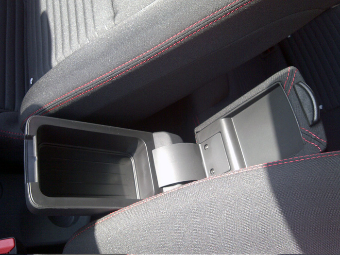 También hay un apoyacodos abatible con cajón en su interior. A mi me molestaba al cambiar de marchas, a mi compañero Luis M. Vitoria de Motorpress, también. El problema se soluciona colocándolo en vertical o bajándolo del todo, pero claro, el pasajero ya no puede apoyarse en él.