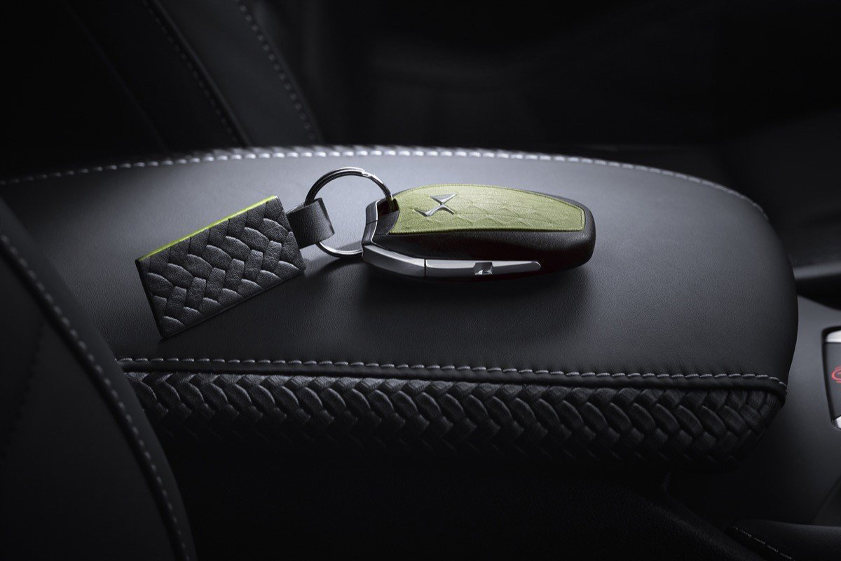 En el interior, los asientos tapizados en cuero Nappa de color negro tienen un nuevo diseño, en el que destacamos una especie de trenzado que recorre la parte central del asiento. Este cosido especial está presente también en los laterales del reposabrazos central, en los paneles de las puertas, encima del cuadro de instrumentos o en el llavero (imagen).
