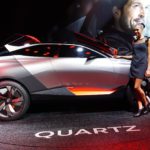 El Quartz es un prototipo de cuatro plazas que, según Peugeot, resulta de la fusión de un todoterreno y una berlina. Es un híbrido enchufable. El sistema de propulsión está compuesto por un motor de gasolina de 1,6 litros, 4 cilindros y 270 CV —1.6 THP 270— y dos motores eléctricos (uno por eje) de 115 CV cada uno. La potencia máxima es de 500 CV. El motor eléctrico del eje anterior, además de impulsar el coche, asiste al motor térmico en los cambios de marchas. Más información sobre este prototipo.