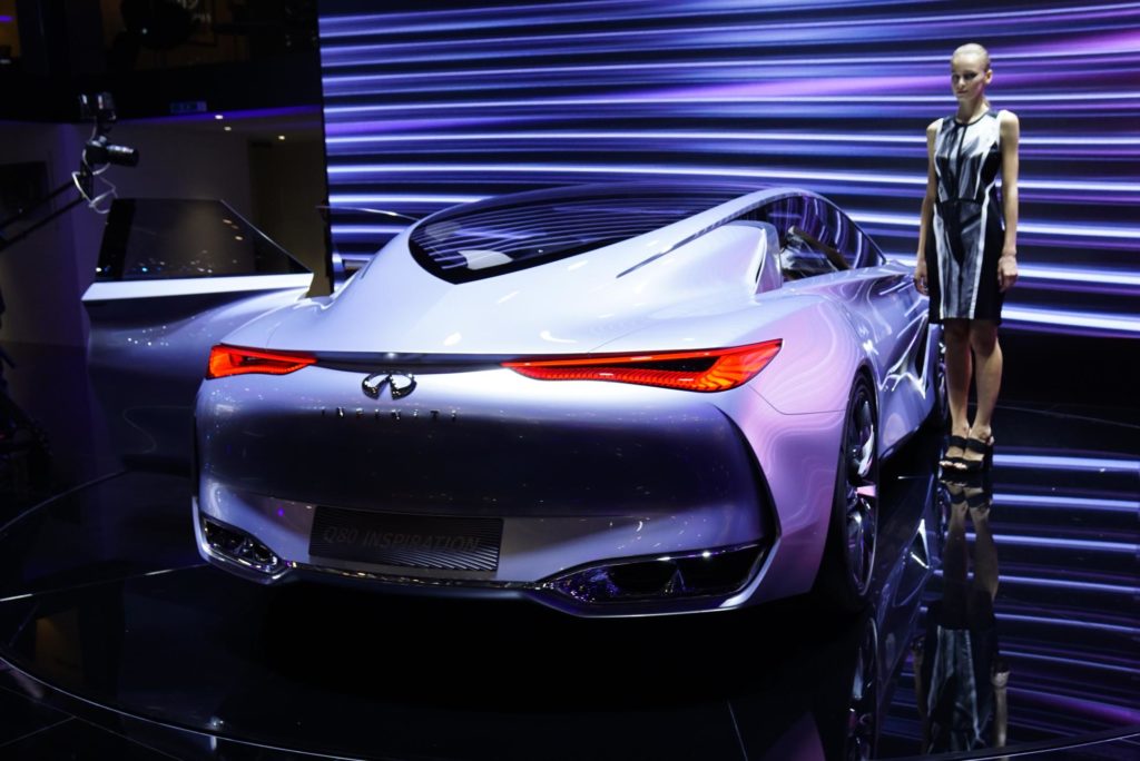 El Q80 Inspiration es un prototipo con el que Infiniti muestra el aspecto que podría tener una futura berlina de cuatro plazas y cuatro puertas. Las puertas delanteras se abren en el sentido de la marcha, mientras que las traseras lo hacen en sentido contario. Tiene un motor de gasolina de 3,0 litros de cilindrada y seis cilindros colocados en «V» que da 450 CV y otro eléctrico que da 100 CV. Más información sobre este prototipo.