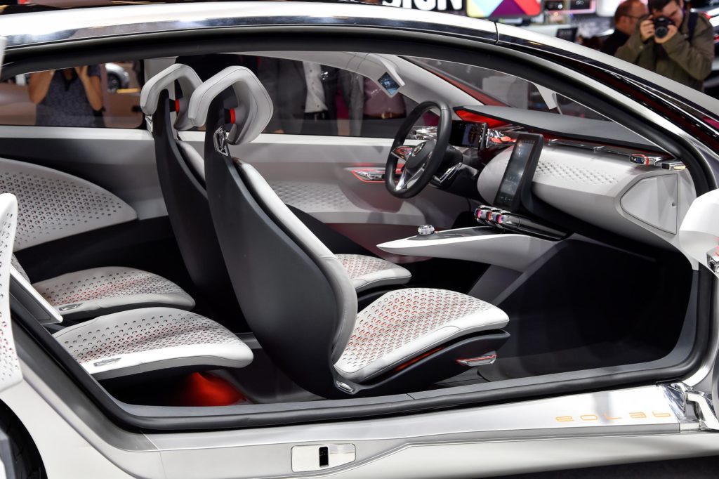 El Renault EOLAB es un prototipo con una disposición asimétrica de las puertas. Tiene una en el lateral izquierdo y dos en el derecho, además de un portón trasero que da acceso al maletero. El EOLAB es híbrido y su batería se puede recargar en un enchufe. En modo eléctrico la autonomía es 60 km (en condiciones de homologación) y la velocidad máxima, 120 km/h. No hay retrovisores exteriores ni interior sino varias cámaras que captan la imagen que se proyecta en tres pantallas del habitáculo. Más información sobre este prototipo.