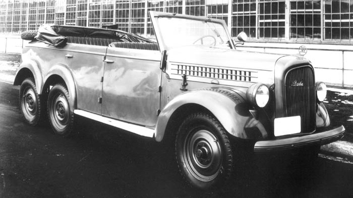 Škoda Type 903 de finales de la década de 1930. Tiene tres ejes y seis ruedas, cuatro de ellas con tracción. Su motor era de gasolina, de seis cilindros y daba 61 CV.