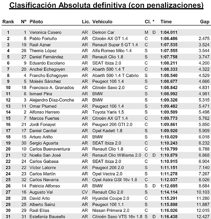 Me sorprende lo reñidísimo de las diferencias en el añadido de tiempos, la diferencia entre el 1º y el 2º en la categoría de serie es de 3 milésimas.