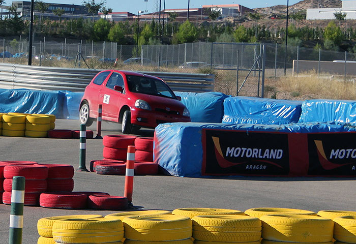 En el segundo me pasé de listo. Me explico: El slalom era en el Circuito Internacional de Zuera, prueba que se celebra dos veces al año y que destaca por la ausencia de conos. Es un slalom en el que hay poco de slalom y como con el Yaris no hay punto que rascar en un circuito así decidí, animado por mi compinche Themis, ir con el Julai de carreras. Así que nos presentamos ahí con el Accent, calzado con los únicos neumáticos que teníamos que no eran slicks (está prohibido calentar ruedas y un slick frío tiene una adherencia similar a un trozo de madera), un par de neumáticos de calle de dios sabe cuándo y dos de lluvia. Primera sorpresa al llegar al circuito, habían puesto conos. Segunda sorpresa, que no lo fue tanto, llegar a la primera curva y ponerse el coche mirando al revés. Resumo el día: fracaso total, cero puntos para Themis, cero puntos para mí. Grabé unos vídeos, los edite, preparé las fotos y guardé todo eso muy bien guardado en un ordenador que se rompió poco después. La tercera prueba de la temporada coincidió con un evento familiar al que no podía faltar si no quería que mi hermana dejase de hablarme el resto de la vida.