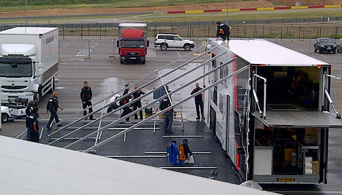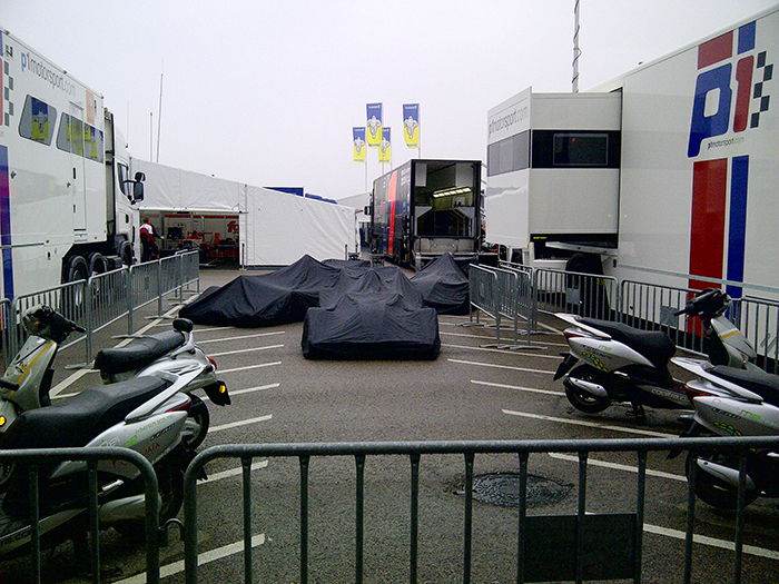 Ayer aprovechando la junta di unas vueltas para ver como iba el montaje de todo este sarao. Es increíble la cantidad de medios y personas desplazadas. Unos montaban los avances de los camiones, otros acondicionaban los boxes, los 3.5 tenían una jornada de test que fue cancelada este invierno 2 veces, en Monza y Motorland por nieve, los de Eurosport pasando cables e instalando cámaras, Michelin y Pirelli montando neumáticos sin parar, etc.