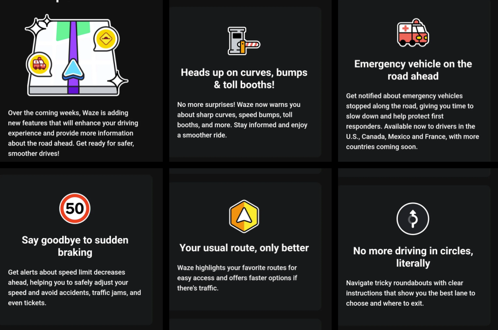 A estas se les suma la alerta por presencia de vehículos de emergencia detenidos en la vía. Waze avisará cuando haya servicios de emergencia parados en el arcén o en la calzada, dando margen al conductor para reducir la velocidad y cambiar de carril si es posible. De momento, esta función se activa inicialmente en Estados Unidos, Canadá, México y Francia, pero llegará a más países.
