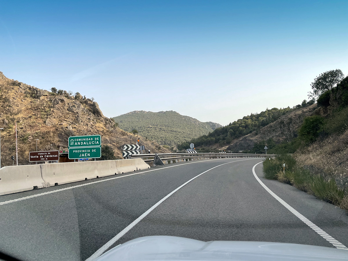 Jaén no es seco. Es verde y marrón, pespunteado con millones de olivos, ordenados de mil maneras. Un paisaje especialmente bello para ver desde el coche, porque cambia con el movimiento.