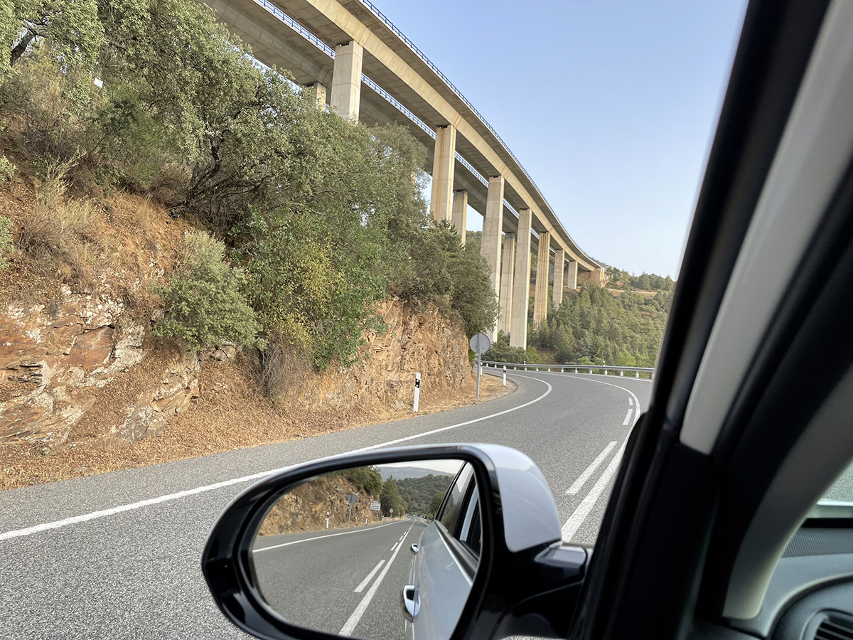 Al avanzar, casi por cualquier carretera, las laderas de las colinas, el ángulo con el que encaras el paisaje, la ordenación de las costuras de árboles, cambian metro a metro. Con tu cambio de posición, cambia el paisaje. Es un espectáculo en movimiento. Vayas rápido o despacio, el decorado de ese escenario avanza y se mueve contigo.