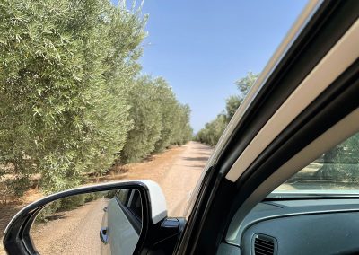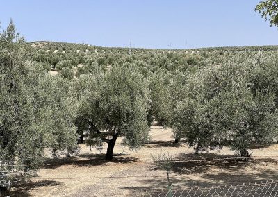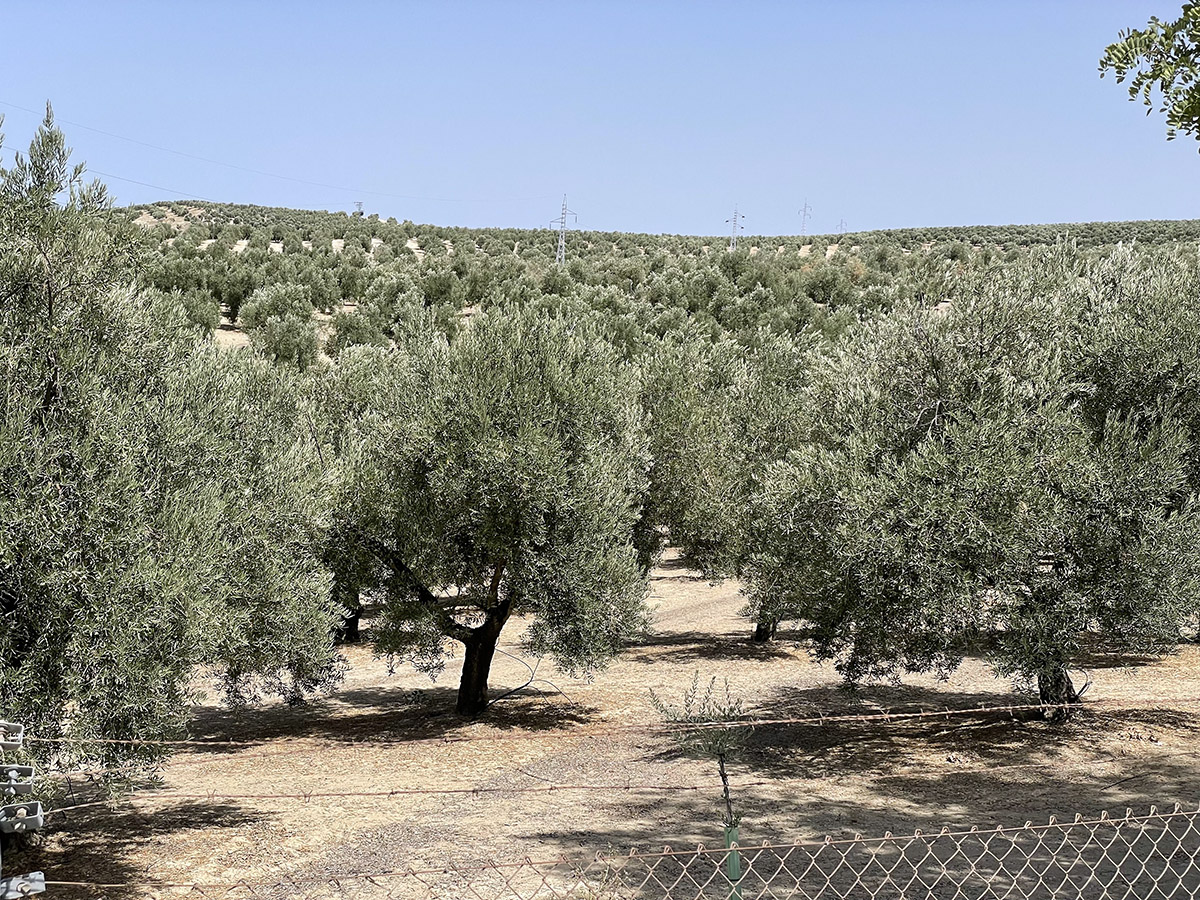 Puede navegarse desde cualquier carretera y también desde el interior mismo del campo. Cuando estás tan cerca de los olivos, en algunos casos, como en el de la foto superior, oyes y escuchas un ruido ensordecedor, que parece de cigarras. Cuando lo oyes y lo escuchas, piensas, inevitablemente, en si ese ruido será querido por los agricultores o no, si la presencia de animales es deseada o no y empiezas a pensar en las dificultades de sacar una cosecha adelante, de mantener económicamente este tinglado. Sabes, porque te lo han contado o lo has leído, que están eliminando olivos centenarios, plantados con desorden, por olivos jóvenes y bien ordenados, para conseguir recolectar la aceituna de forma automática «única forma de hacer rentable el negocio», según cuentan algunas voces.