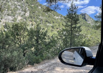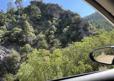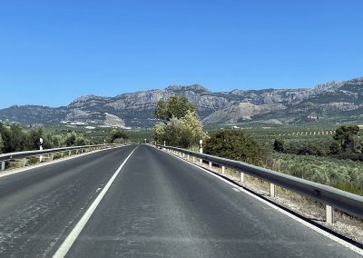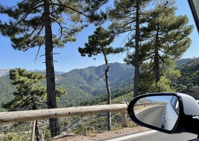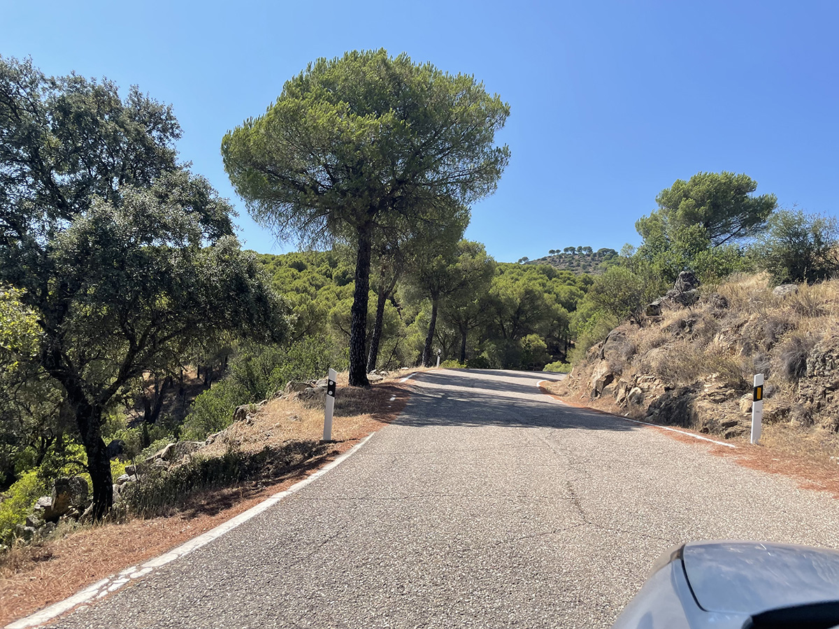 En las sierras de Jaén, las carreteras tienen buen asfalto, salvo en los caminos de tierra y en algunas zonas aisladas. Conducir por ellas en coche eléctrico ha sido un placer, por la facilidad de conducir, por la excelente respuesta del conjunto eléctrico y por la belleza del paisaje. Para recorridos como este, en los que sólo haces kilómetros por dentro de la provincia, un coche eléctrico da unas prestaciones inigualables. Tanto para disfrutar del paisaje como para superar pendientes muy pronunciadas sin la menor preocupación y sin hacer sufrir los embragues. Un descubrimiento.