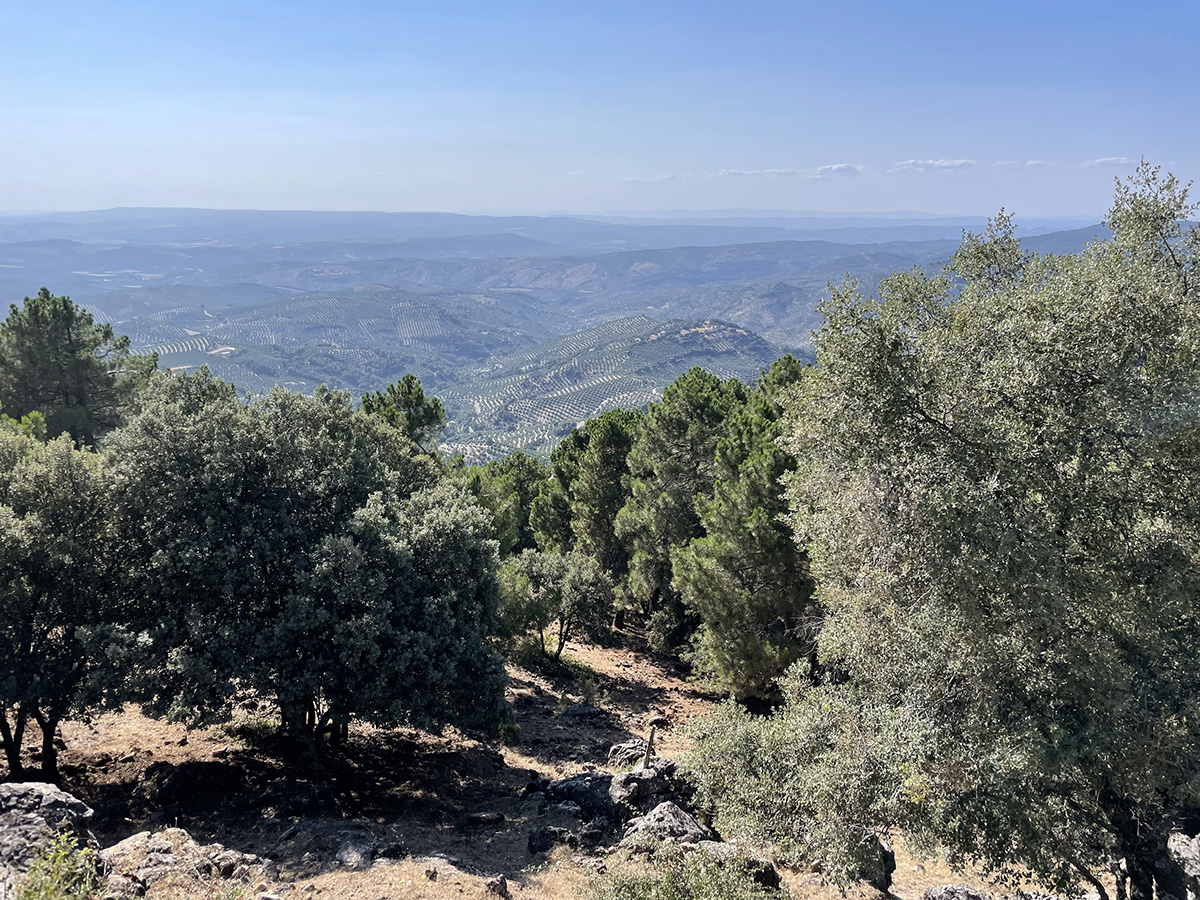 Las sierras de Jaén son el único espacio de la provincia en el que cambia la vegetación. El verde de los olivos deja sitio a los pinos en la mayoría de lugares, pero en Sierra Mágina y en la Sierra de Andújar también hay muchas encinas. Casi siempre, estés donde estés, si miras hacia el valle la mirada encuentra olivos en un momento u otro. En Jaén, el olivo es el referente que te hace sentir bien. Hace sentir que estás en casa, con ese verde que se platea a sí mismo, en un acto reflexivo único y señorial, en las sienes imaginarias de todos los árboles.