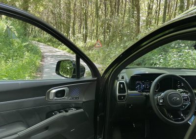 El Kia Sorento que me ha llevado a descubrir Lugo es un coche de siete plazas, con propulsión híbrida y un maletero de buen tamaño en configuración de cinco plazas. con este coche, grande, he ido desde Madrid hasta Lugo, ida y vuelta, por autovía. Por dentro de la provincia de Lugo he recorrido casi 700 kilómetros, unos 150 por autovía y el resto por carreteras de diferente categoría y estado.