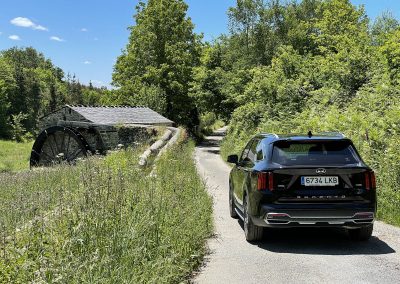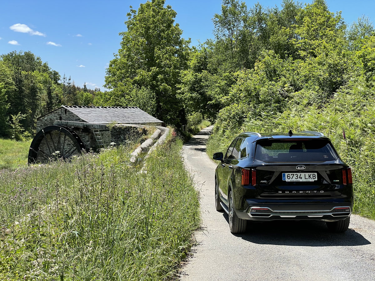 De todos los recorridos que he realizado, el más difícil ha sido el camino de ascenso a las minas de la Silvarosa, en Viveiro, que ha puesto a prueba las aptitudes del Sorento fuera del asfalto. Por un camino muy difícil y roto, el Sorento ha pasado muy bien, si bien es cierto que el camino no estaba embarrado, porque con neumáticos de asfalto no me hubiera atrevido a circular por un camino con barro y fuertes pendientes. La unidad que he conducido lleva de serie el sistema Terrain Mode Select, que permite regular de forma electrónica la mejor respuesta en función del terreno. En las condiciones por las que he circulado fuera del asfalto no he necesitado hacer uso de él. En arena o barro, quizá hubiera sido útil, aunque con neumáticos para asfalto no son terrenos que yo recomiende.