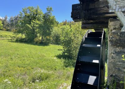Los sistemas de molienda fueron evolucionando, hasta que llegaron los molinos rotativos con los que la productividad se multiplicó. De esos molinos rotativos, hubo unos que se denominaron de sangre, porque estaban movidos por esclavos, que seguro que necesitaban comer buena parte de la harina que producían para seguir alimentando la rueda. De los esclavos se pasó a los bueyes y en un siguiente paso, todavía antes de Cristo, el ingeniero romano Vitruvio, cuyas directrices también sirvieron para construir la muralla lucense, inventó un sistema para que el molino fuera movido por agua.