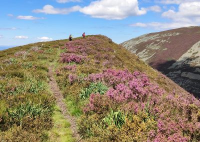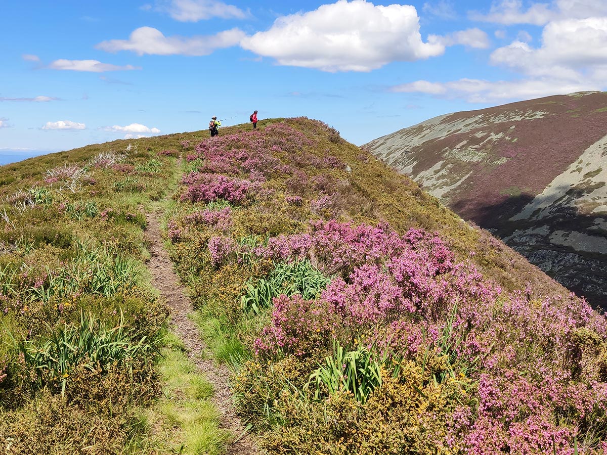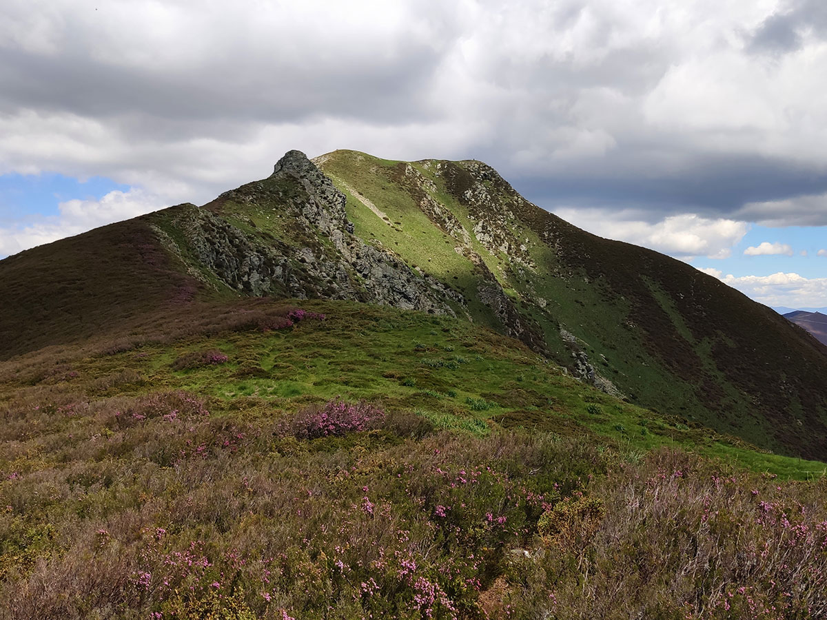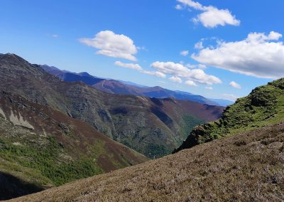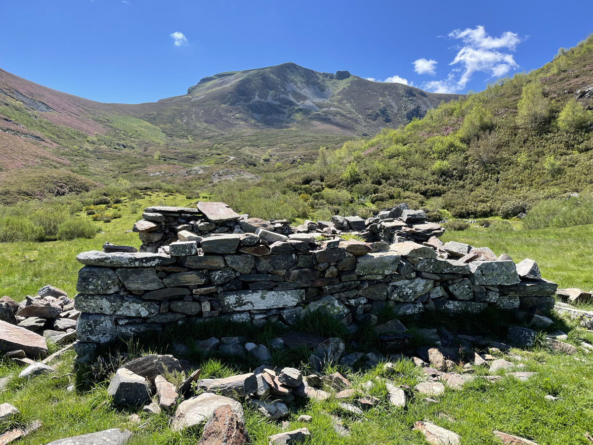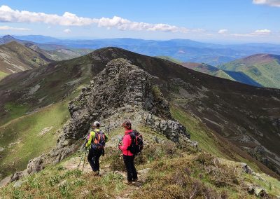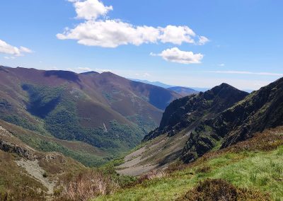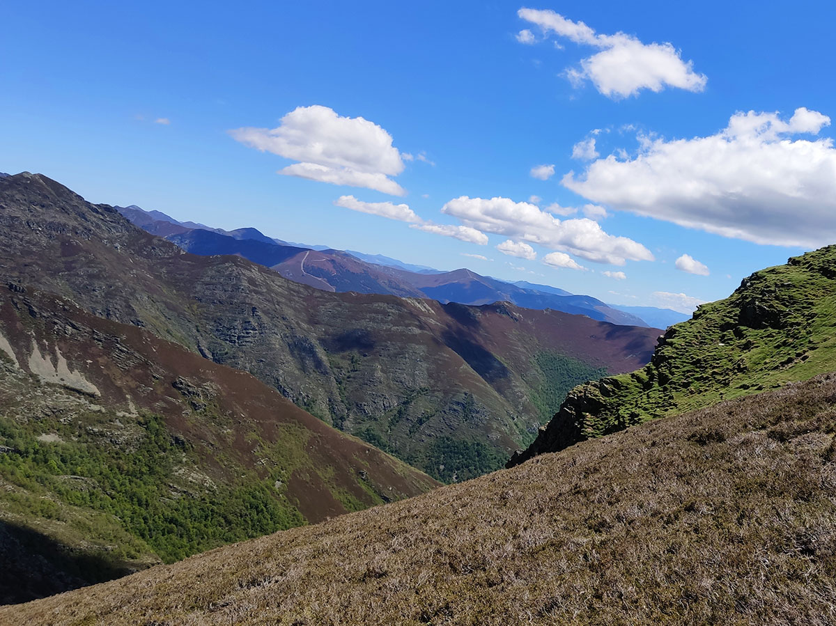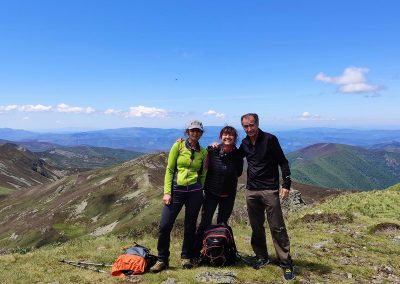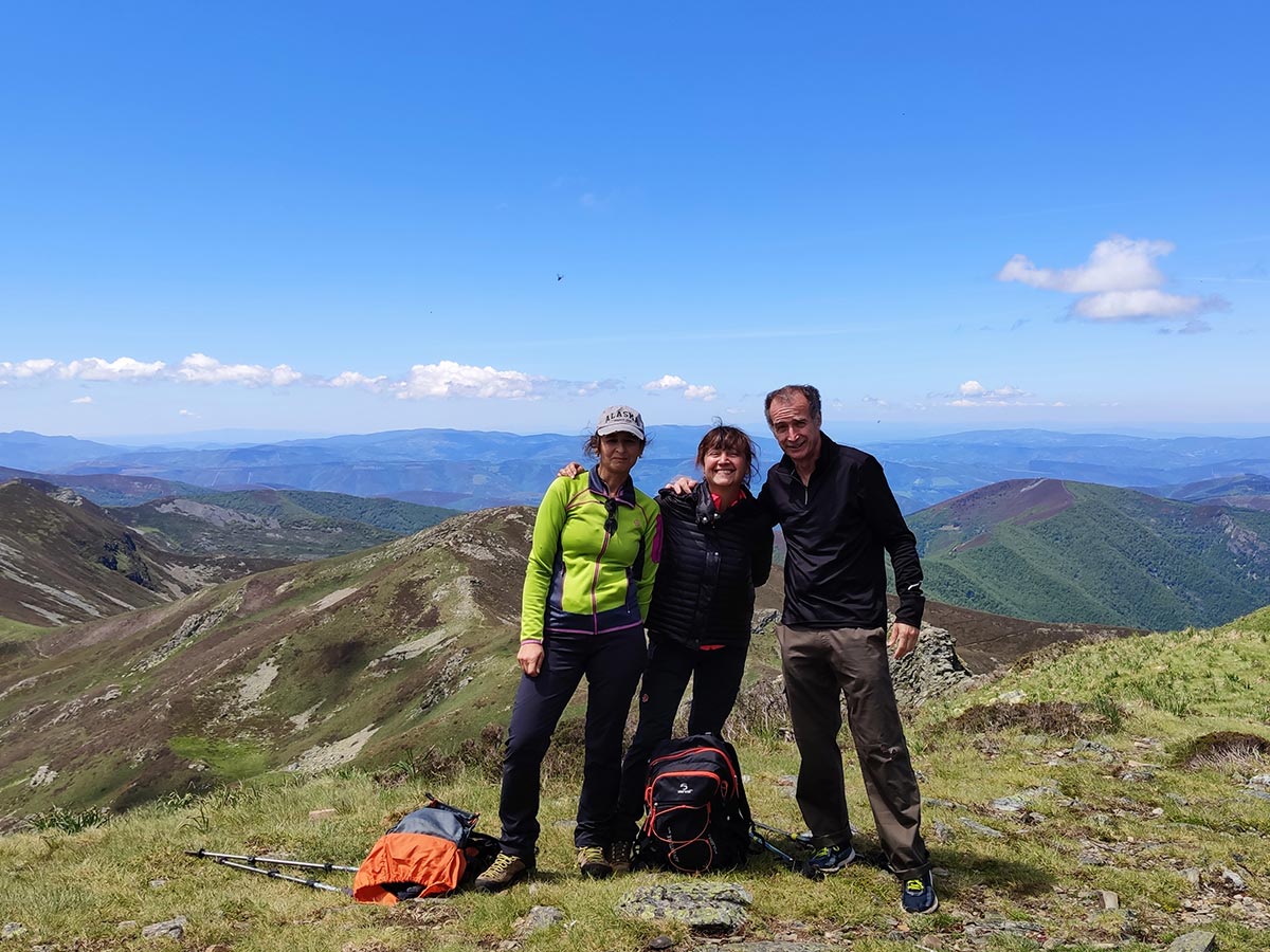 En la cumbre nos encontramos con Miguel y Víctor, que han subido mucho más rápido que nosotros. Miguel, originario de Navia de Suarna, una población atravesada por el río Navia y con un puente precioso, sigue hablando en el mismo gallego que a mitad de subida. La altura no ha surtido efecto en él y a mí sigue pareciendo que lo entiendo todo, pero no entiendo casi nada. Lourdes y Rosa tienen previsto bajar por un camino distinto al que hemos seguido para subir. Mi plan era distinto. Así que…, sigo con ellas.