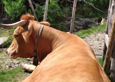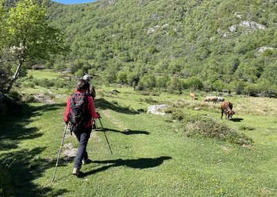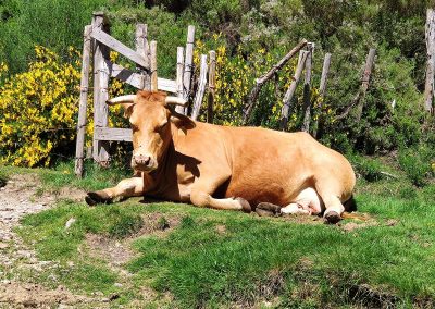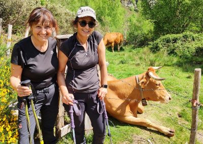 La tarde está llena de emociones. Una vaca enorme, plantada delante de una puerta que es paso obligado, eleva de nuevo la tensión. “¿Por dónde pasamos? Es enorme y tiene los cuernos muy grandes”. La vaca, tumbada en el suelo, parece pacífica, pero creo que nunca en toda mi vida he estado tan cerca de una vaca y menos de unos cuernos de ese tamaño. La rodeo. Le doy una patada suave sin querer. La vaca ni se inmuta. Una vez paso yo, Lourdes y Rosa siguen el mismo camino y cruzamos la puerta sin percance alguno.