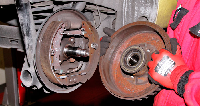 En las ruedas traseras no hay discos sino tambores. Las pistas de frenado de los tambores no presentaban arañazos y el desgaste era casi inapreciable.