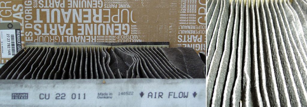 Filtro de aire del motor tras 60 000 km. Demasiado sucio