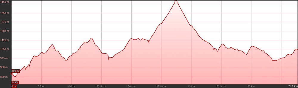 Este este el perfil del recorrido de consumo (sentido ida) que hacemos en km77.com