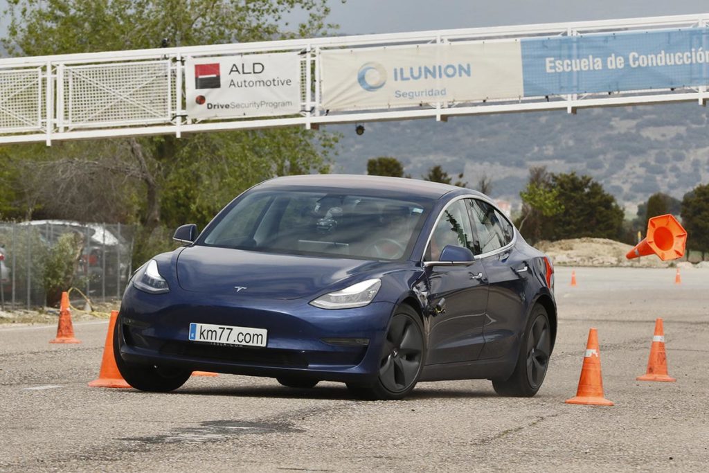 En el eslalon las sensaciones fueron igual de buenas. Se nota que el centro de gravedad del Model 3 está situado muy bajo y que, aun siendo un coche pesado, de casi 2000 kg, le cuesta poco cambiar de dirección. Esto, junto con una dirección rápida y precisa, y la correcta intervención de las ayudas electrónicas, permite enlazar los conos (separados cada 22 metros) con rapidez y gran sensación de control. Es un coche con unas reacciones que dan mucha confianza para conducir al límite de adherencia de los neumáticos.