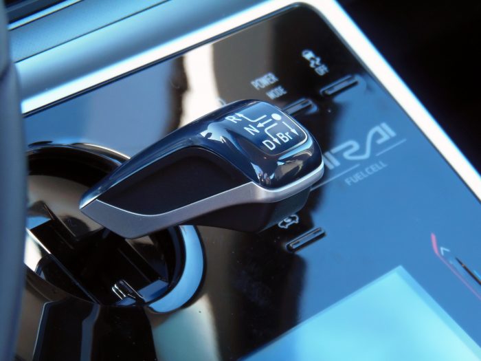 - Toyota continúa utilizando la misma palanca selectora que en sus híbridos. El modo de conducción a un pedal no está implementado en el Mirai.