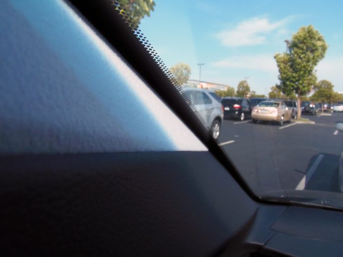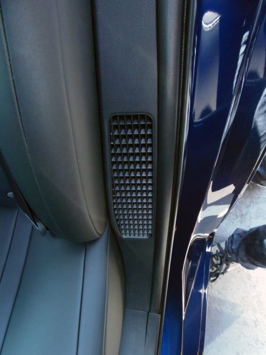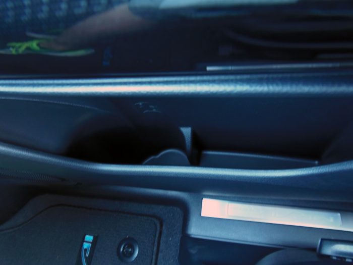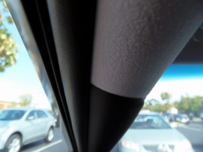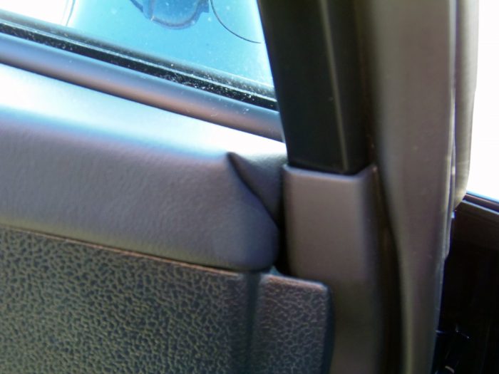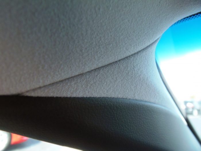 - Una pieza de goma negra se extiende por el pilar A desde el salpicadero al techo.