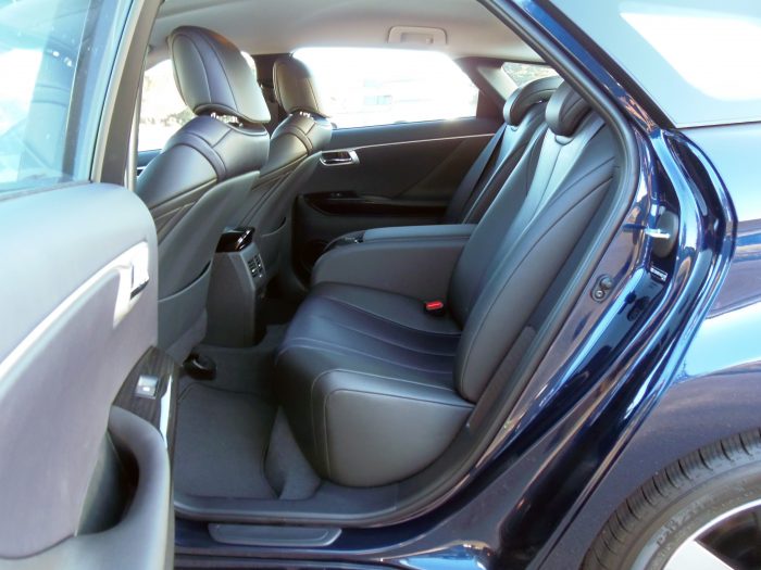Los asientos traseros son cómodos, aunque los pasajeros más altos se verán obligados a ir un poco agazapados al no poder poner los pies debajo de los asientos delanteros, ya que el hueco está ocupado por la pila de combustible. Los respaldos de los asientos son fijos, no pudiéndose abatir para ganar espacio de maletero. De nuevo, está característica viene dada por la ubicación del tanque de hidrógeno y la batería que se utiliza para la frenada regenerativa. Por otra parte, el piso en las plazas traseras curiosamente no es plano: tiene una ligera pendiente hacia el túnel central y las plazas delanteras, lo cual hará que los pies de los pasajeros traseros estén a distinta altura el uno respecto al otro.