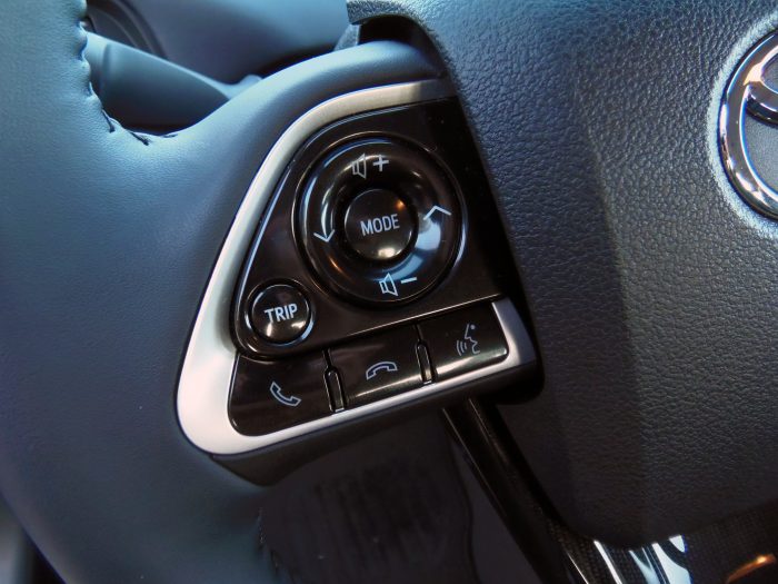 La disposición de los botones resulta además un poco confusa, especialmente los controles de climatización. Estos se hallan en la mitad inferior del puente, lo que obliga a doblar la muñeca en excesivo o mover el brazo hacia atrás para poder tocarlos. Para acabarlo de rematar, los botones que activan estas funciones son capacitivos, de manera que el más mínimo roce con la mano hará que los asientos calefactables cobren vida en pleno día sin importar el calor que pueda hacer fuera. ¡Cómo echo de menos los controles de temperatura integrados en el volante del Prius!