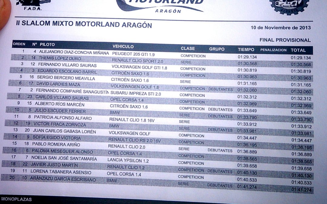 Sí, sigo corriendo slaloms. Vamos por el cuarto del Campeonato y aquí sólo he hablado de dos, contando éste. ¿Y los otros dos? Pues, son el segundo y el tercero de la temporada. En el segundo me pasé de listo. Me explico: El slalom era en el Circuito Internacional de Zuera, prueba que se celebra […]