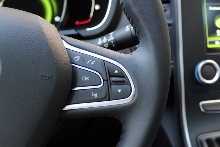 Tengo un Megane II el cual dispone de un mando muy parecido (creo que solo cambia la ausencia de botón Tel). Me parecen muy cómodos de usar los botones de subir y bajar volumen y la ruleta. Los otros botones situados en la parte superior e inferior, aunque se usan muy poco, me parecen poco ergonómicos porque obligan a cambiar la posición de la mano mientras sujetas el volante.