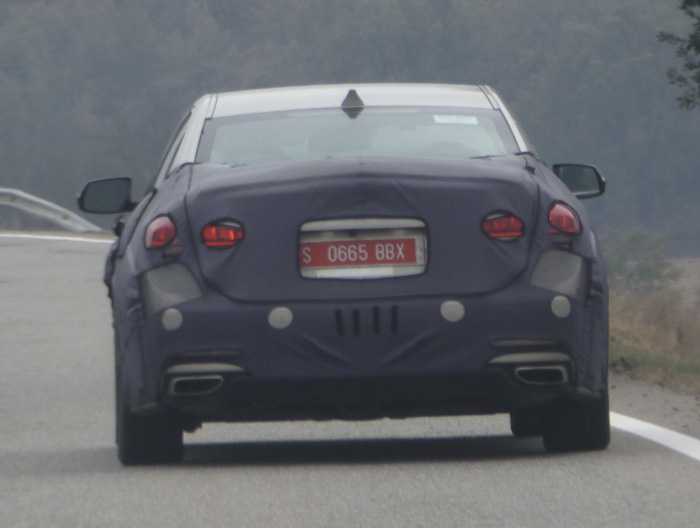 Por la parte de atras tiene un «aire» a aleman premium, pero la entrada de aire delantera me llevaria a apostar por algo ingles como un Jaguar o similar, o incluso un futuro Mondeo o Volvo grande..