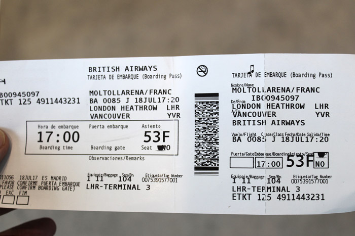 En la tarjeta de embarque tampoco aparece mucha ayuda. Dice que el asiento es el 53F, pero ninguna pista de si eso es arriba, abajo o en la escalera.