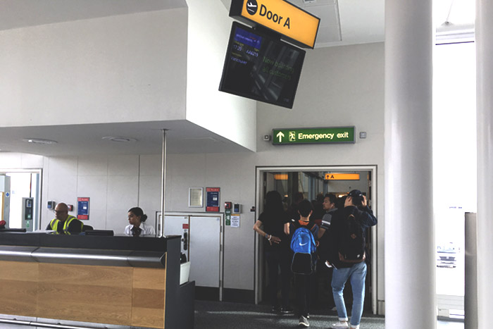 La puerta A te dirigía al «upper deck» y las puertas B y C al «main deck«. Lo sorprendente es que en las pantallas no lo indica, por lo que tienes que entender a la azafata de tierra o al azafato de tierra cuando hablan por el micrófono para colocarte en la fila adecuada. Mi capacidad para entender a los británicos cuando hablan por un micrófono tiende exponencialmente al cero absoluto por lo que no era capaz de saber por qué puerta tenía que embarcar.