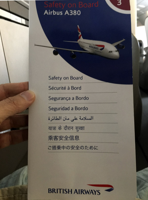 Otras fotos que he tomado son las de la pantalla en la que aparece diseccionado el avión. Según la web de British Airways tiene capacidad para 469 pasajeros. Es mucha gente, pero no sé por qué pensé que cabríamos más.