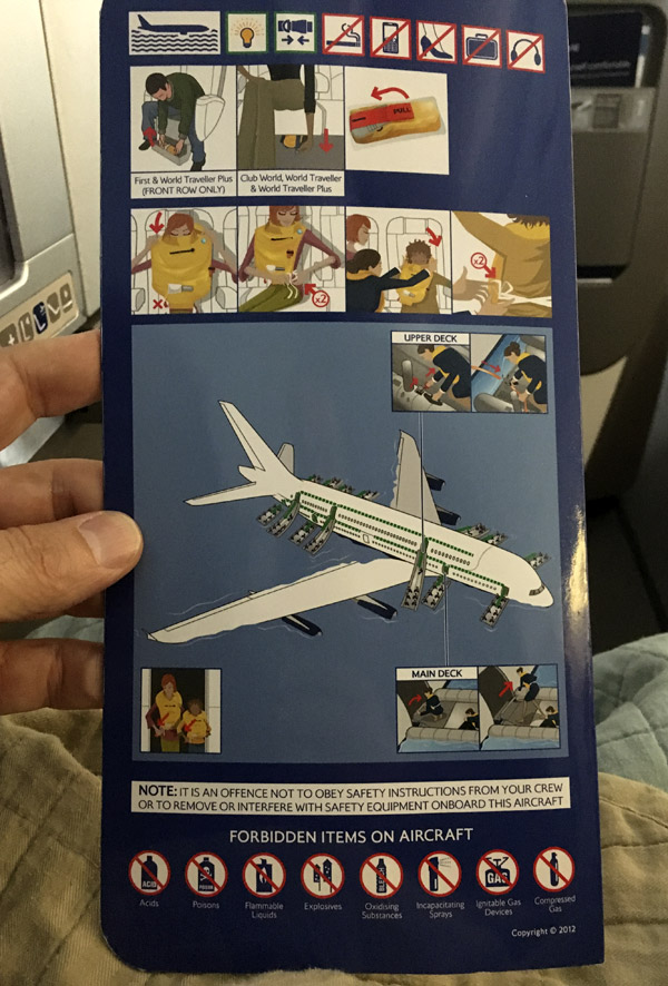 Antes de que despeguen, les muestro el folleto de seguridad a bordo.