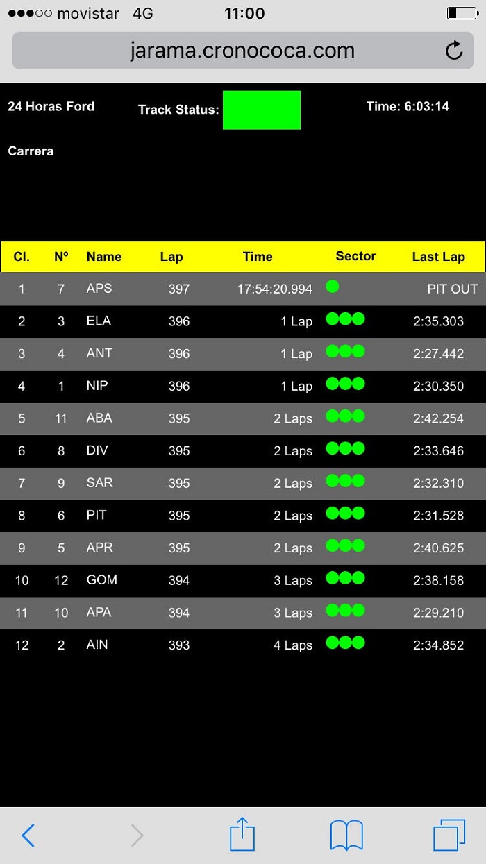 A las 11:00 de la mañana la clasificación es la siguiente: