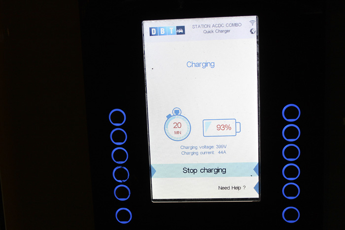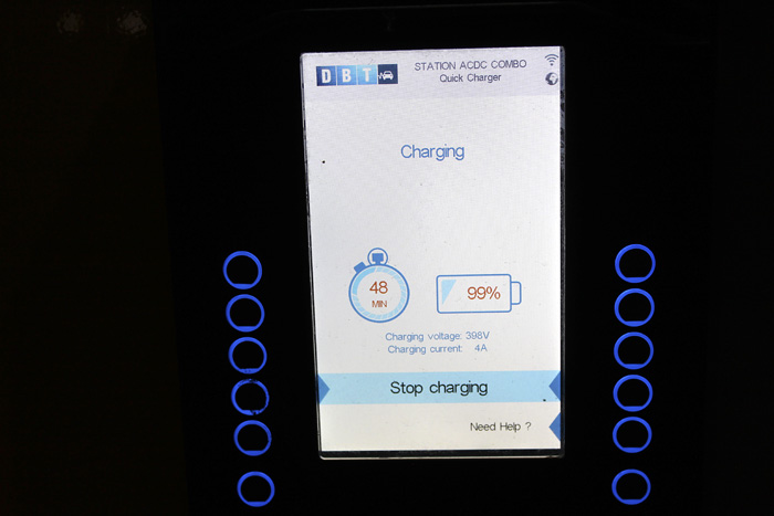 Ahora el coche me indica que la plena carga tardará 15 minutos menos que lo previsto inicialmente. Estoy ya casi al 100%.
