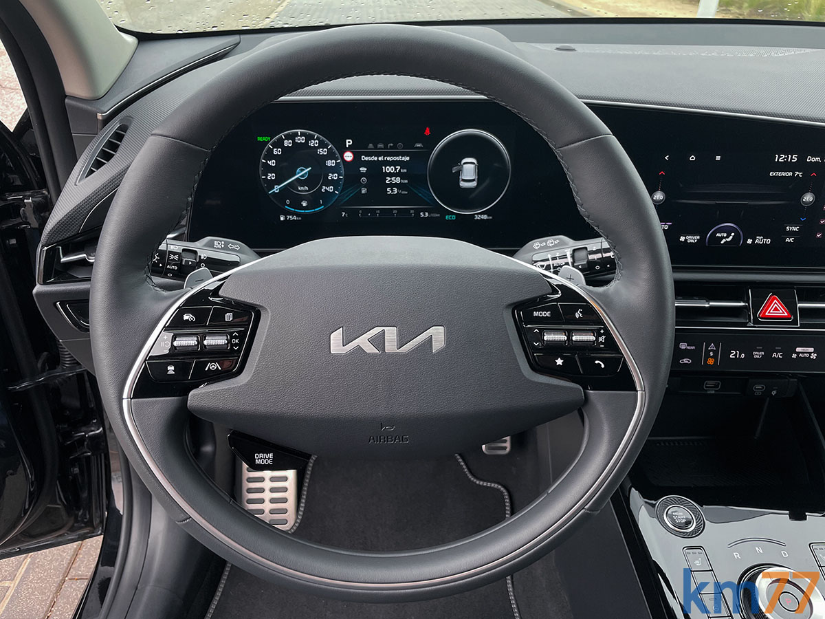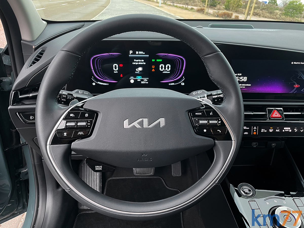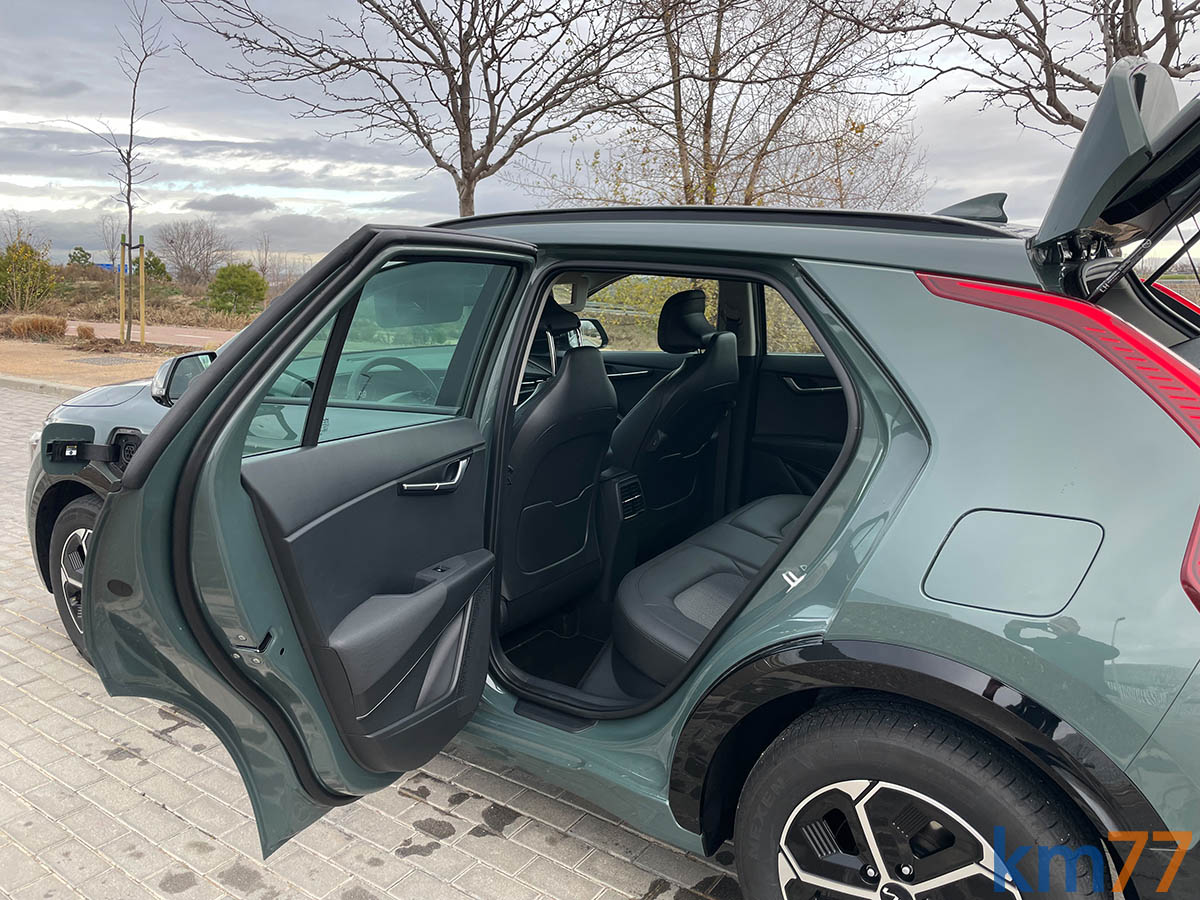 Comparamos la versión «Drive» del Niro PHEV con la versión «Emotion» del HEV. Son las unidades que hemos conseguido para esta prueba. Existen tres niveles de acabado y equipamiento para todos los Niro: «Concept», «Drive» y «Emotion». Optar por la versión más equipada del HEV y otra menos equipada del PHEV me parece que tiene sentido porque a cambio de disponer de una batería eléctrica que se puede cargar mediante un enchufe y de un motor eléctrico de mayor potencia, podemos estar interesados en renunciar, por ejemplo a asientos y volante calefactable, a la regulación eléctrica del asiento delantero derecho, al portón de accionamiento eléctrico y a la tapicería de piel de la versión «Emotion».
