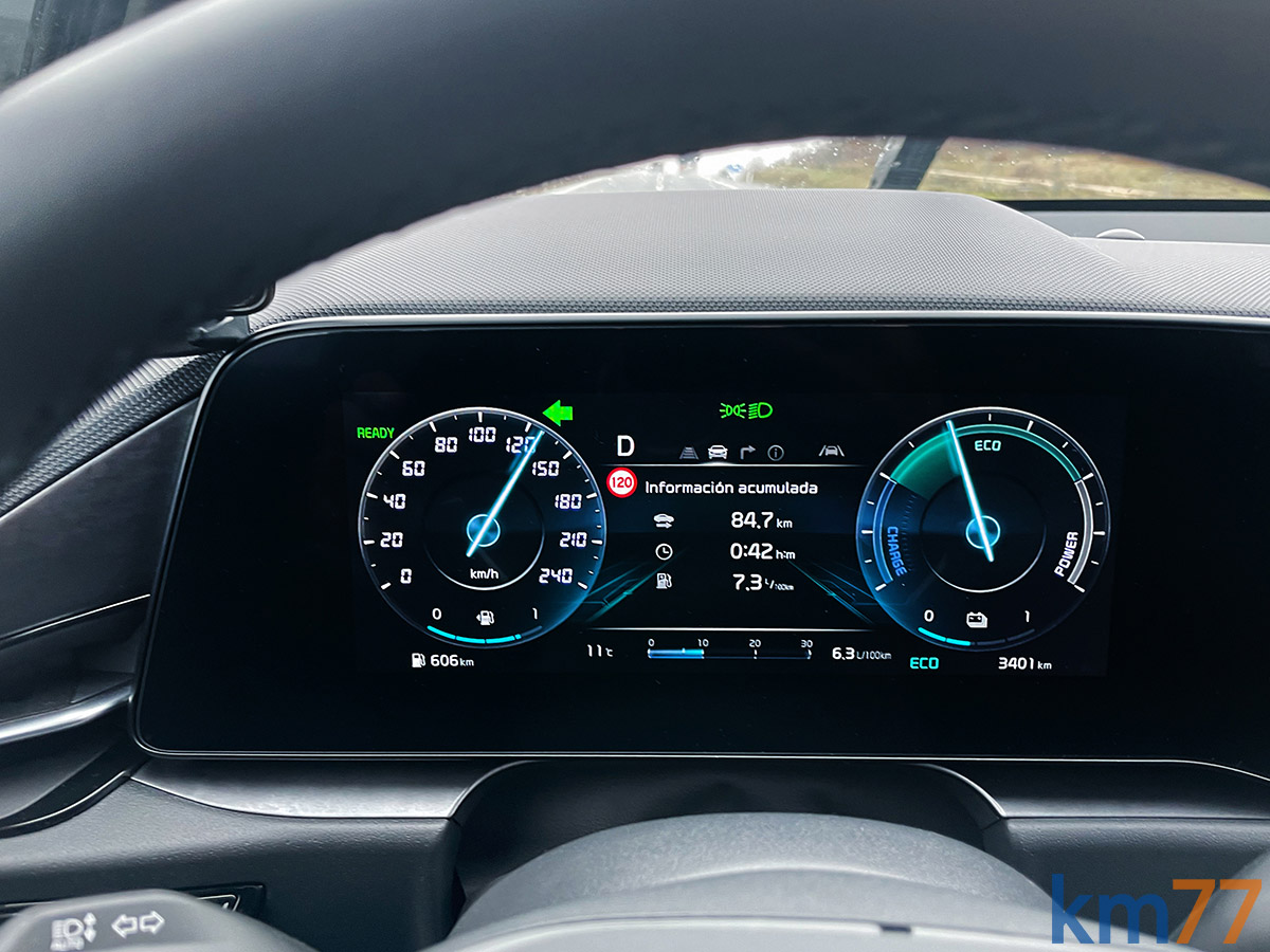 Como propietario (bastante satisfecho…) de un Hyundai Ioniq HEV, que tiene un sistema hibrido parecido (aunque de una generación anterior) al del Kia HEV, puedo decir que si hay alguna circunstancia en la que no esta nada a gusto es en mantener cruceros por encima de 120 kmh en autopistas/autovías con cierto desnivel.