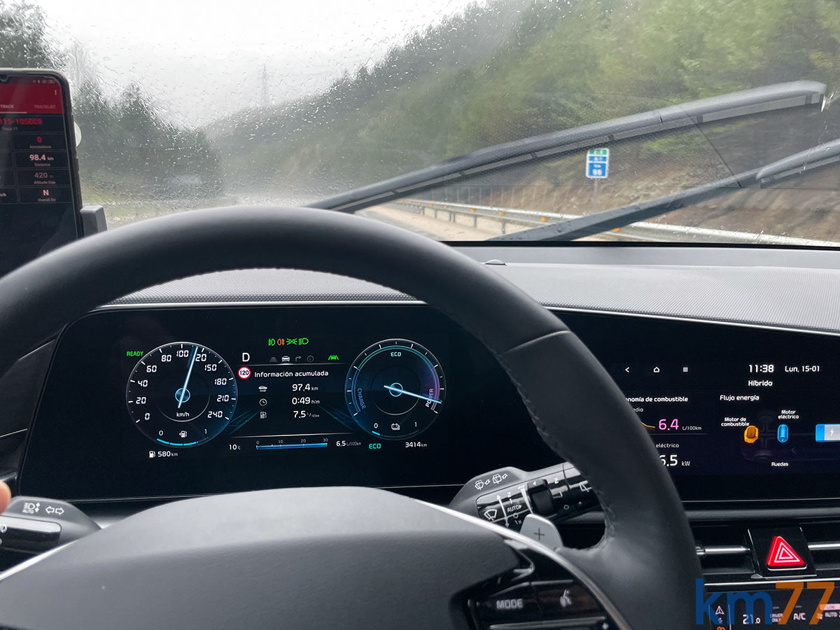 La sorpresa ha sido mayúscula. Antes de empezar el recorrido, que hemos realizado simultáneamente Fernando Ríos y yo, uno detrás de otro, bajo un aguacero constante, los dos estábamos convencidos de que el HEV consumiría menos. Por el menor peso, principalmente. Sin embargo, cuando empezaron las primeras cuestas empinadas, advertí que tenía que acelerar a fondo para mantener la velocidad de crucero que marcaba Fernando con el PHEV y sospeché que esa exigencia impediría al HEV obtener un dato mucho mejor que el PHEV. Lo que no podía sospechar es que el PHEV ganara por goleada.