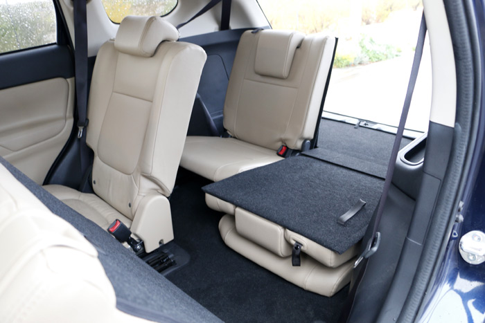 La altura de la banqueta de la tercera fila es de 23 centímetros cuando está desplegada. Al plegarla bascula y queda pegada al piso y gracias a ello el respaldo del asiento enrasa con la superficie del maletero.