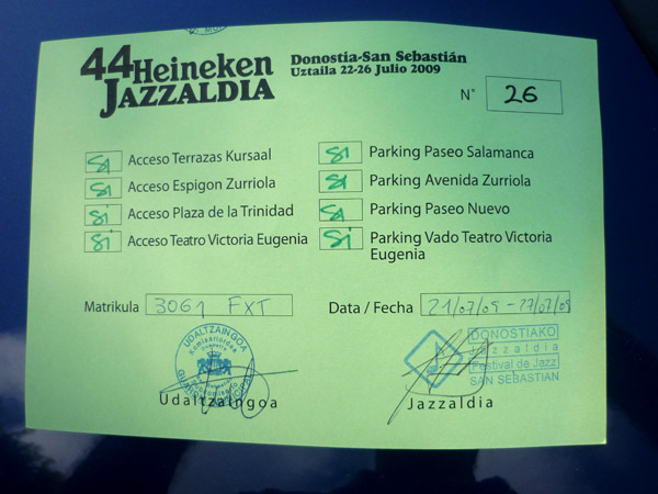 Arriba en la oficina, más alivio. Todos me saludan con cordialidad, Asier me da las instrucciones y me adjudica la tarea de llevar a las 19:15 a Jake Shimabukuro. Tengo que llevarlo desde el hotel Costa Vasca hasta el Kursaal. Son cuatro personas. Me dan las llaves del Octavia Combi (familiar) que me corresponde y me dejan la posibilidad de que vaya de apoyo a otros transportes en los que haya muchos músicos. Me señalan en en color amarillo varias opciones en un planillo y me «echan» a la calle con planos, instrucciones y teléfonos de los lugares en los que debo dejar a los músicos para los conciertos, dónde tengo que recoger y aparcar el coche cuando termine y todo lo necesario para que me espabile con un poco de estudio de los papeles. Perfecto. Me da tiempo para ir a comer a la zona vieja con unos amigos de Madrid que están en San Sebastián. Ellos han venido al Festival y conocen a los músicos mejor que yo (que no sé nada). Estudio con ellos el planillo para que me den recomendaciones de a quién puedo llevar.