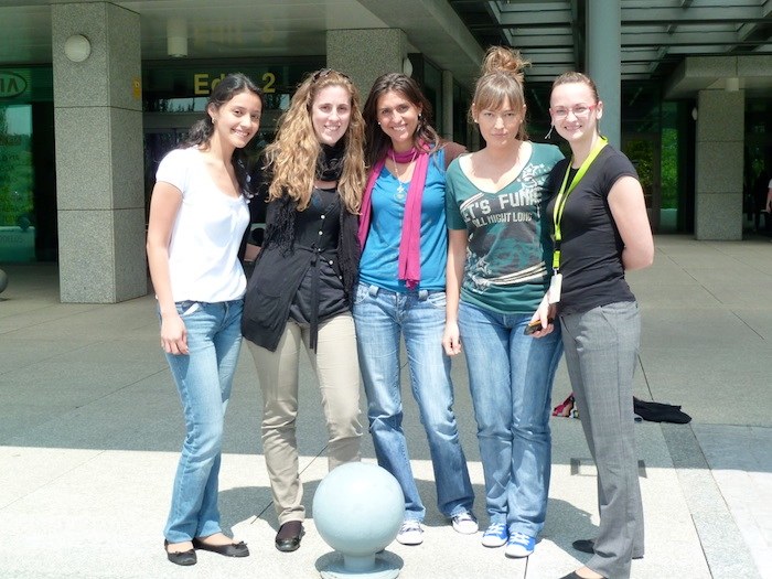 Me acerco a fotografiar el coche en el que teóricamente tendré que llevar a Rafa. Soy consciente de que, en el mejor de los casos, será imposible hacerle una foto al lado del coche. En la calle esperan más chicas. La noticia ha corrido por los edificios de oficinas cercanos. Les digo a las chicas que preguntan por Rafa que les voy a hacer una foto y que la voy a publicar. Todo les parece bien. Lo único que quieren es que llegue pronto, que tienen que ir a trabajar. Me da la impresión de que se arriesgan a reprimendas en el trabajo, pero no pueden separarse de esa puerta por la que esperan ver aparecer al tenista de sus sueños.