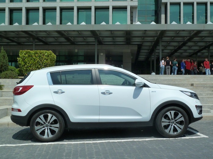 El KIa Sportage, blanco, espera al pie de la escalera.