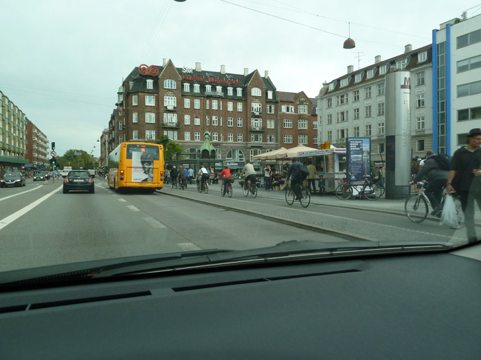 En Copenhague hay más bicicletas que coches. Hice varios intentos por fotografiar esas bicicletas que llevan a los niños pequeños sentados por delante, en un cubículo en el que van casi rozando el suelo con el culo, pero no lo conseguí. Cuando pasaba una de esas bicis, con el supuesto padre o madre dando pedales, nunca tenía la cámara preparada.
