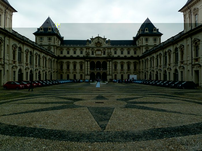 El coche se ha presentado en el «Castello del Valentino». ¿Qué es obligatorio decir de un lugar asi?. Marco incomparable. ¿O no? Especialmente con la decoración preparada por los responsables de Fiat.