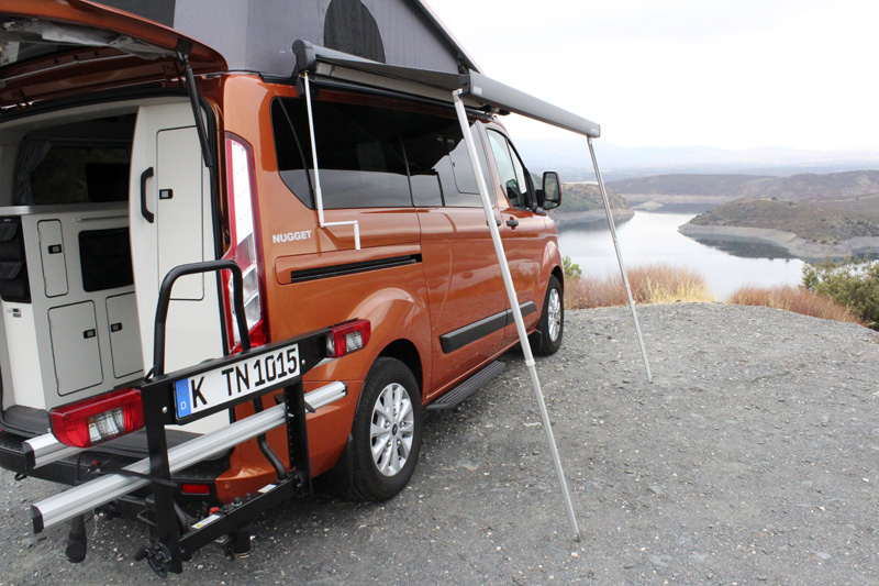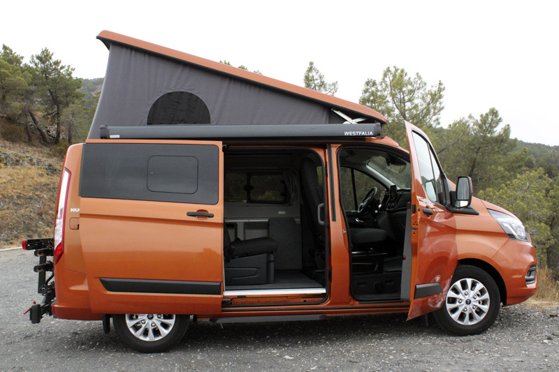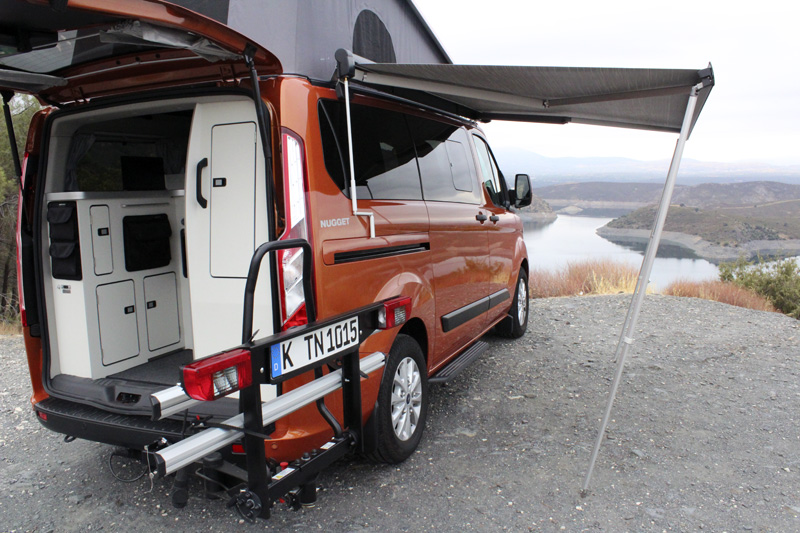 Lo bueno de un coche que te lleve a dormir al mar o cerca del cielo es que el espacio que abre por fuera puede ser muy grande. No lo será en una parcela de camping, pero sí puede serlo en una montaña perdida. Para aprovecharlo, la Nugget dispone de porche con vistas.