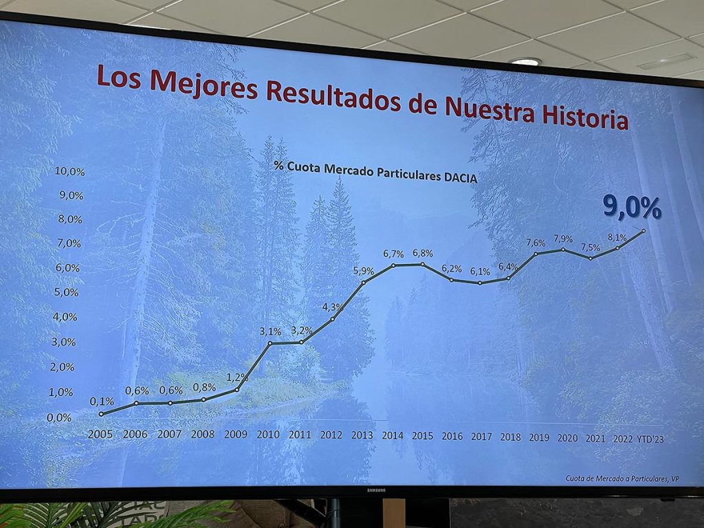 Como contaba al principio, a pesar de su pequeña gama y de que sólo dispone de un coche de verdadero volumen, Dacia pisa muy fuerte en el mercado de particulares, donde se sitúa en cuarta posición en la actualidad. En el mercado global, en junio de este año, Dacia estaba situada en octava posición, pero espera situarse tercera o cuarta en el mercado de particulares a finales de 2023.